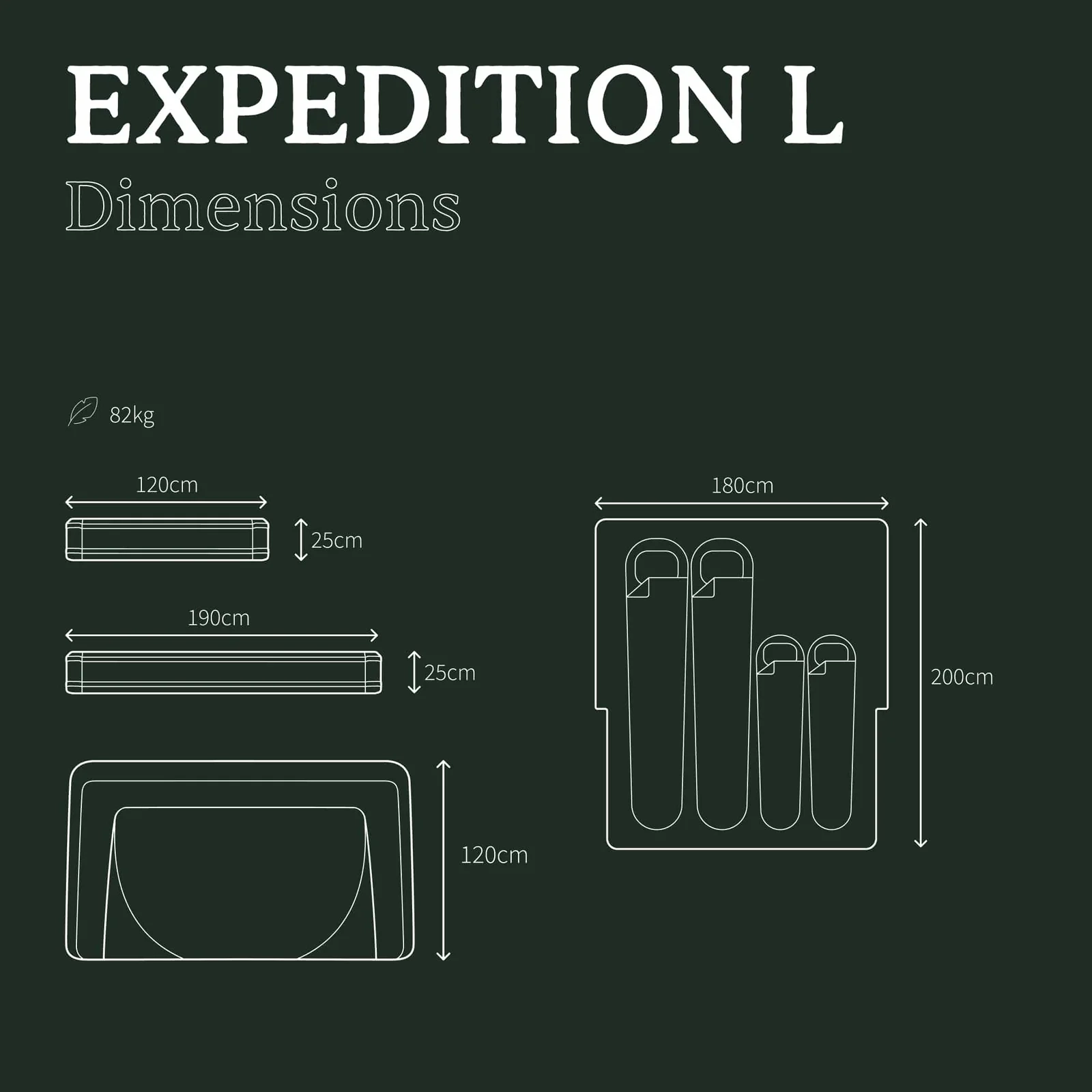 • Dimensions (fermée) : 190 × 120 × 25 cm