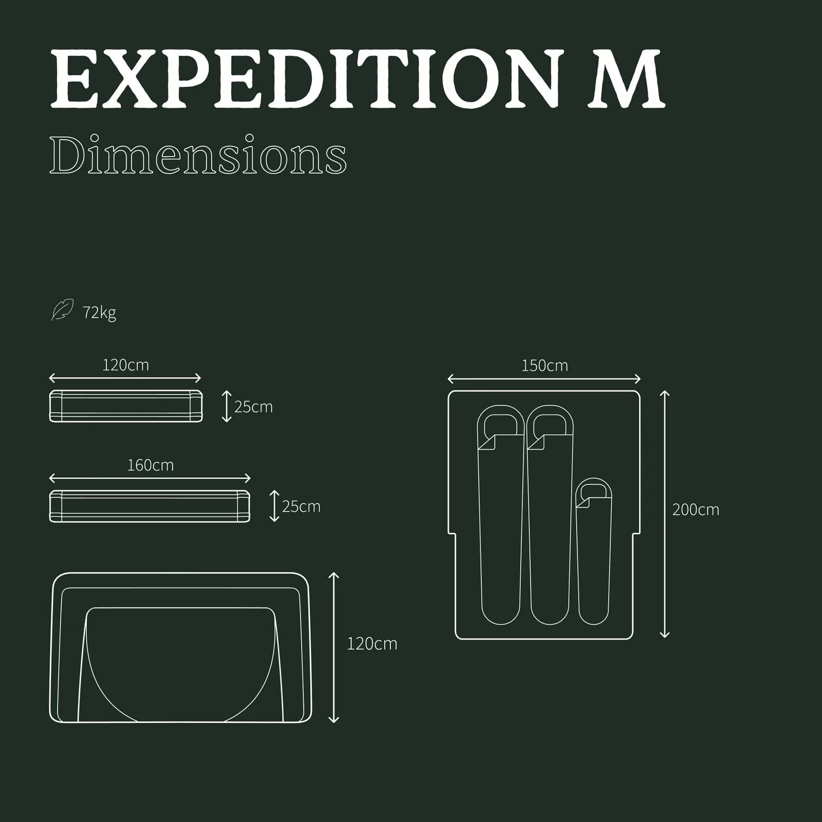 - Dimensions fermée : 160 × 120 × 25 cm
