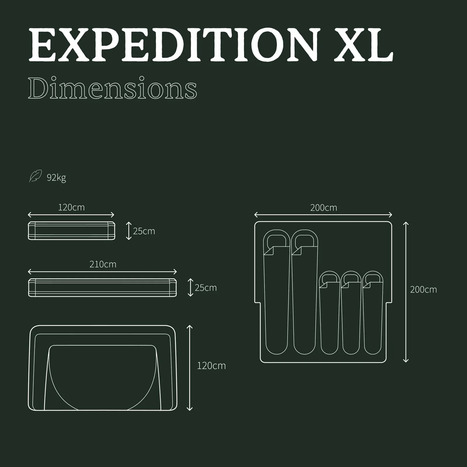 Un espace de couchage généreux pour partager l’aventure : L’un des atouts les plus marquants de l’Expedition XL est sa capacité à accueillir confortablement 4 à 5 personnes, grâce à un matelas extra-large de 200 × 200 cm. Ce format “king size” transforme chaque nuit en un moment de véritable confort, que vous voyagiez en famille ou entre amis.
