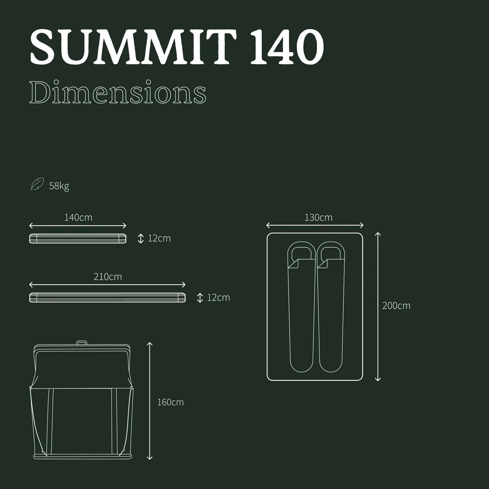 • Dimensions fermée : 210 × 140 × 12 cm