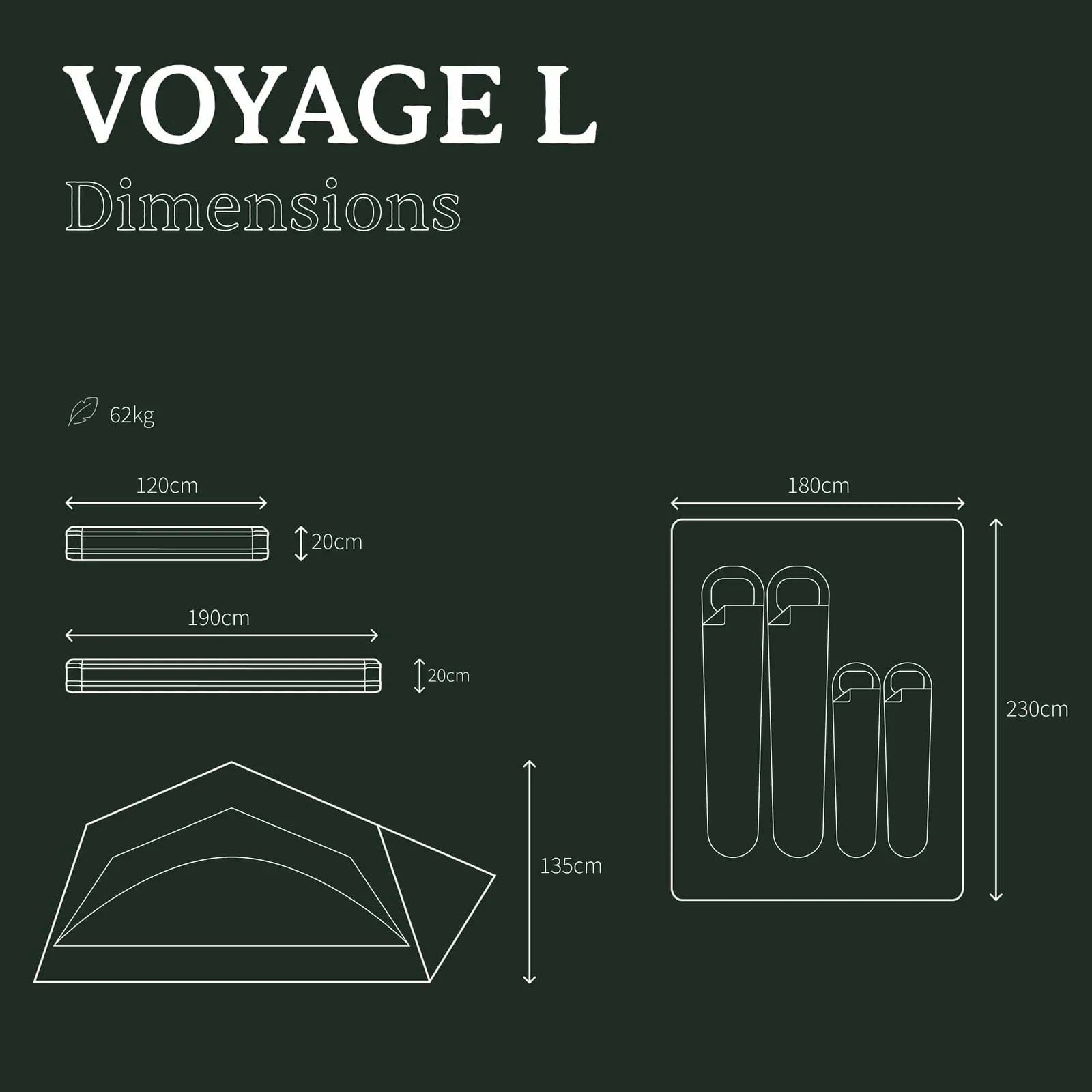 Un espace généreux, lumineux et confortable : L’un des points forts de la Voyage L est sans doute son espace de couchage spacieux de 230 × 180 cm, suffisant pour un couple avec un ou deux enfants, ou pour plusieurs amis souhaitant partager leurs nuits sous les étoiles. Grâce à sa hauteur intérieure d’environ 135 cm, cette tente offre une liberté de mouvement rare sur une tente de toit, facilitant ainsi l’entrée et la sortie, l’organisation de l’espace et même la prise de repas à l’intérieur quand le temps ne le permet pas.